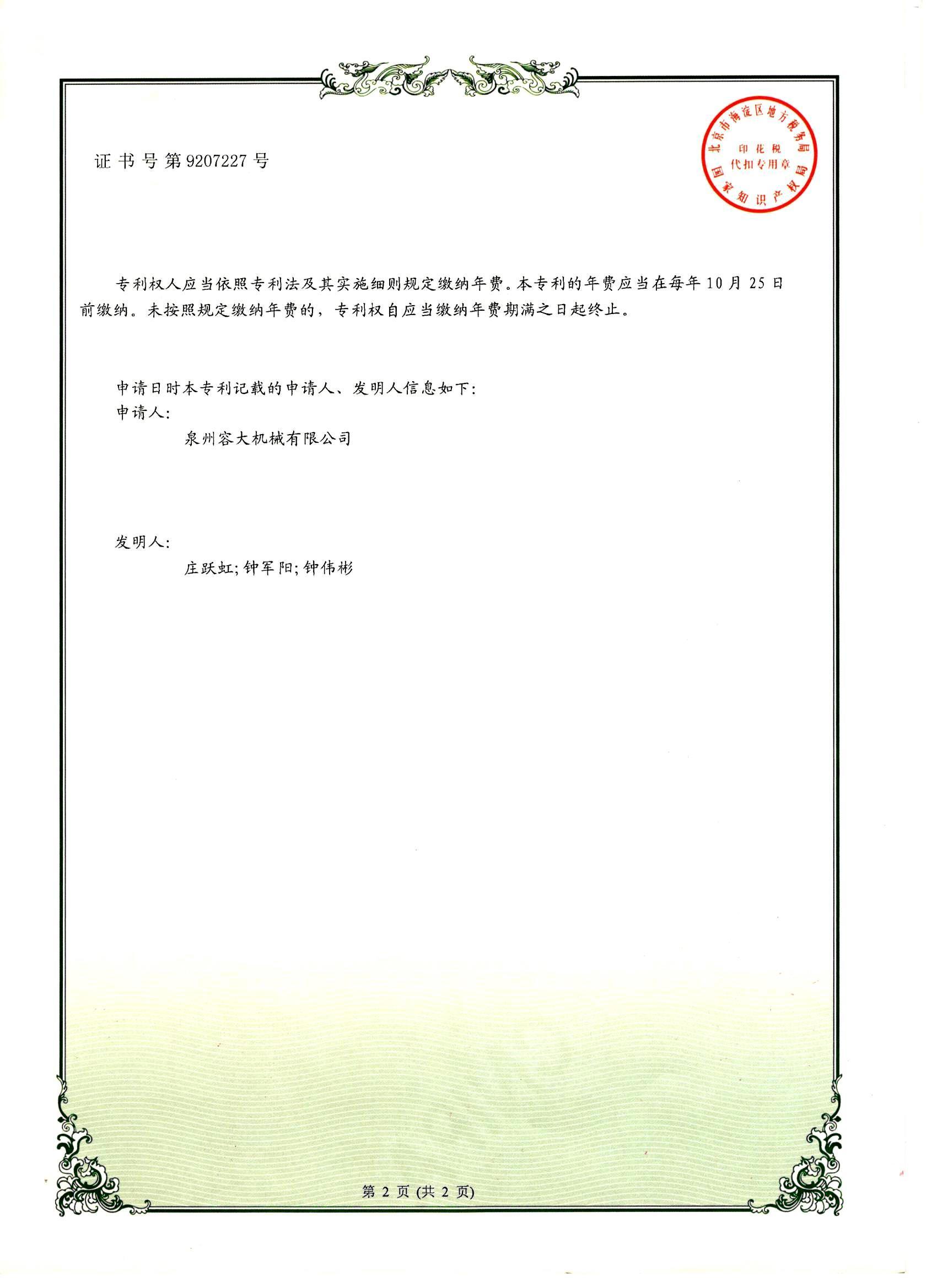您的位置: 泉州容大機(jī)械有限公司 > 專利證書 > 不銹鋼管卷管機(jī)